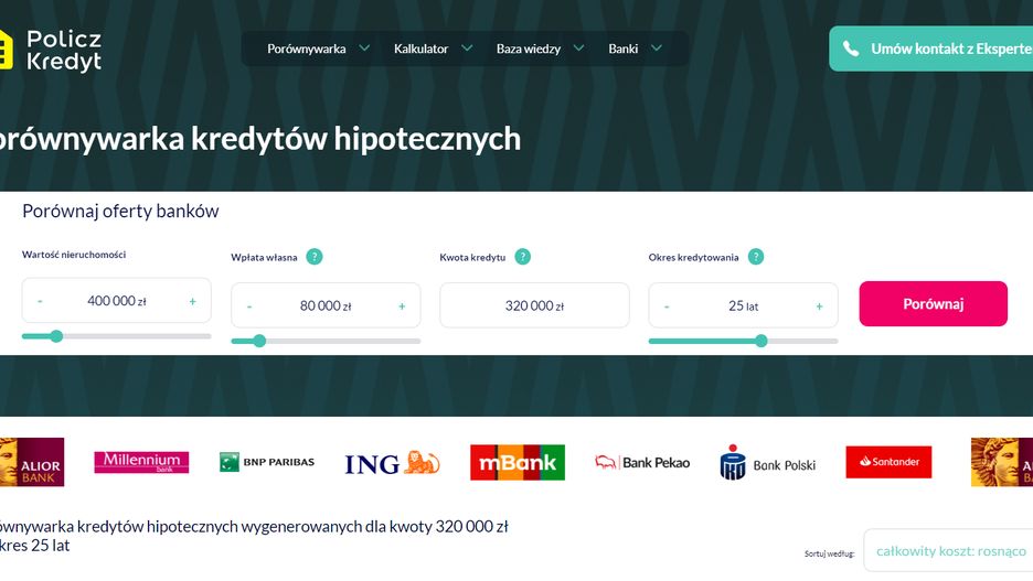 Policz Kredyt: https://policzkredyt.pl/ to intuicyjne w obsłudze i kompleksowe narzędzie, które przyda się wszystkim, którzy planują w najbliższym czasie zaciągnąć kredyt hipoteczny. Serwis umożliwia skorzystanie m.in. z kalkulatora raty kredytowej i kalkulatora zdolności kredytowej, ale to nie wszystko. Na stronie można znaleźć ranking kredytów hipotecznych i porównywarkę kredytową. Do dyspozycji klientów jest również baza wiedzy z dostępem do rozmaitych artykułów na temat kredytu hipotecznego i słownikiem finansowym, który przyda się każdemu, kto dopiero wkracza w świat kredytów. To rozwiązanie będzie szczególnie przydatne dla tych, którzy słabo orientują się w temacie kredytów hipotecznych i chcieliby uzupełnić swoją wiedzę przed zaciągnięciem zobowiązania.