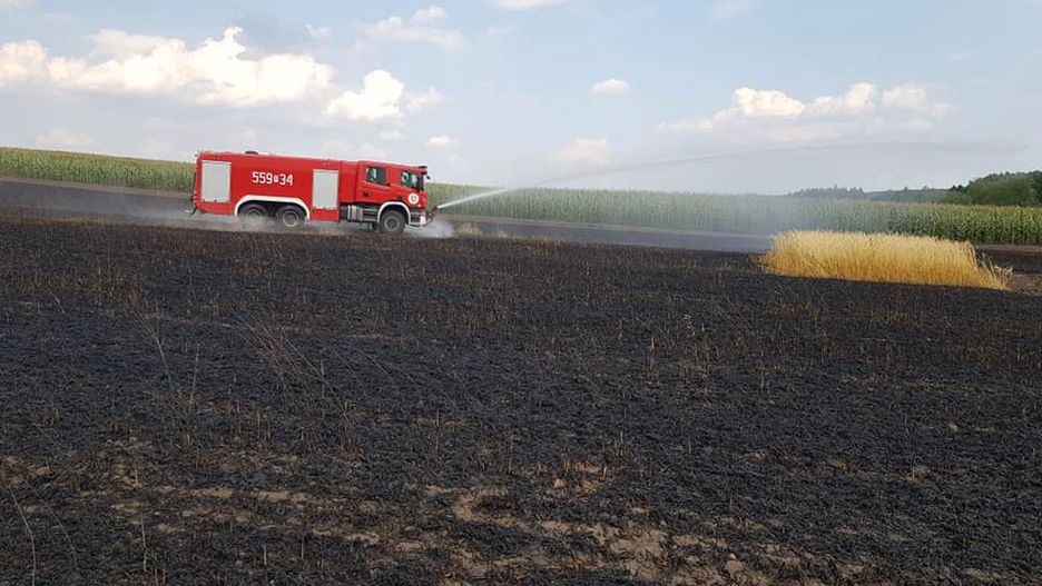 Przed godziną 16.00 strażacy dostali wezwanie do pożaru zboża i kombajnu w okolicy miejscowości Rzęszkowo.
