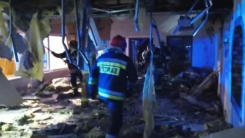 Strażacy zastali pożar poddasza nad salą bankietową i pomieszczeniami kuchennymi w budynku restauracyjnym. Nikt nie został w środku i nikomu się nic nie stało. Wprowadzono strażaków z kamerą termowizyjną i prądami gaśniczymi do wewnątrz budynku. Kolejni ratownicy zabezpieczeni w sprzęt wysokościowy, przy pomocy piły ratowniczej wykonali otwory w dachu obiektu celem oddymienia poddasza i podania dodatkowych prądów gaśniczych. W działaniach gaśniczych użyto lancę gaśniczą, którą wykonano w kilku miejscach przebycia poszycia dachu celem schłodzenia przestrzeni pod blachodachówką. Po przytłumieniu płomieni i oddymieniu wnętrza obiektu ratownicy odszukiwali i dogasili ukryte zarzewia ognia.