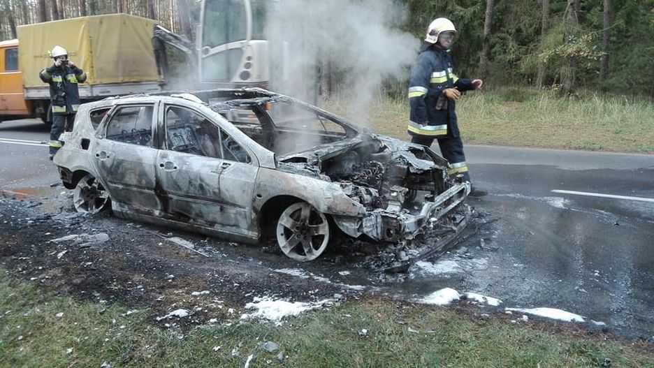 Dwie osoby podróżujące samochodem wyszły zanim przyjechały pierwsze zastępy straży pożarnej. Nikomu nic się nie stało, ale pojazd został całkowicie spalony.