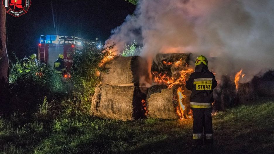 Pożar stogu z balotami