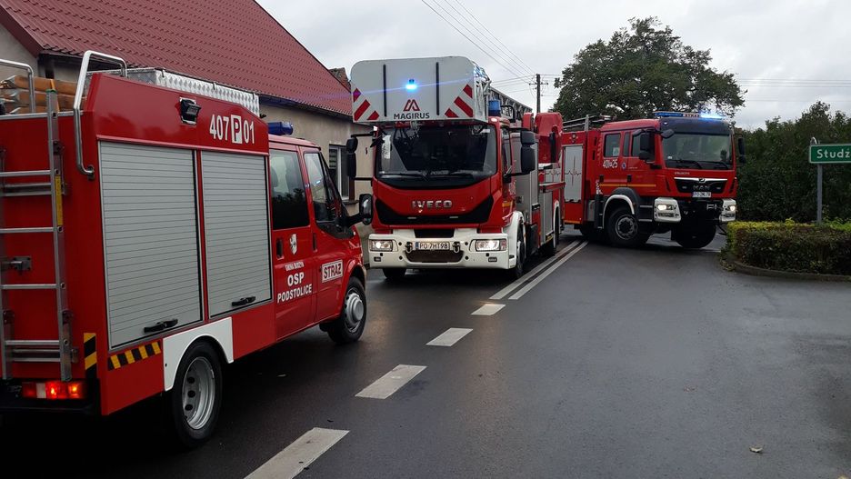 17 października 2020 roku kilkanaście minut przed godziną dziewiątą do Stanowiska Kierowania w Chodzieży (SKKP PSP) trafiło zgłoszenie od Centrum Powiadamiania Ratunkowego o pożarze w kotłowni zlokalizowanej w piwnicy budynku jednorodzinnego w miejscowości Podstolice. Dyżurny SK natychmiast zadysponował zastępy gaśnicze i drabinę mechaniczną z Jednostki Ratowniczo-Gaśniczej PSP z Chodzieży oraz zastępy z OSP KSRG Budzyń oraz OSP Podstolice. Po przybyciu na miejsce zdarzenia pierwszych zastępów straży pożarnej, stwierdzono niewielką ilość dymu wydobywającego się przez otwarte okno z piwnicy. Właściciel przed przyjazdem jednostek ochrony przeciwpożarowej we własnym zakresie ugasił pożar (przy użyciu gaśnicy proszkowej). Mężczyzna znajdował się już na zewnątrz jednak podczas gaszenia pożaru uległ poparzeniu rąk i twarzy. Pierwsze działania straży pożarnej polegały na udzieleniu kwalifikowanej pierwszej pomocy mężczyźnie poprzez zastosowanie hydrożeli na poparzone części ciała oraz wsparciu psychicznemu. Poszkodowanego przekazano przybyłemu na miejsce Zespołowi Ratownictwa Medycznego. Ratownicy zabezpieczeni w sprzęt ochrony układu oddechowego weszli do piwnicy, otworzyli pozostałe okna i drzwi celem przewietrzenia piwnicy. Przypuszczalną przyczyną zdarzenia było zapalnie sią łatwopalnej substancji (rozpuszczalnika) podczas prac konserwacyjnych kotła (pieca). W wyniku pożaru okopcone zostały ściany oraz nadpalona została izolacja w przewodach grzewczych.
