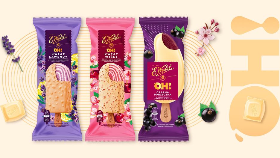 Popularność pełnych owoców sorbetów to silny globalny trend już od kilku lat. Smak, który aktualnie jest jednym z najgorętszych trendów sezonu to malina. Stąd w ofercie Wedla dostępny jest delikatnie słodki i lekko kwaśmy sorbet, składający się w 59% z przecieru malinowego i oblany oryginalną gorzką wedlowską czekoladą. Ponadto w linii lodów OH! pojawiła się nowość – sorbet z czarnej porzeczki, a także letni klasyk czyli sorbet mango. Oba to unikalny koncept Wedla – połączenie mocno owocowego smaku z chrupiącą, białą wedlowską czekoladą.