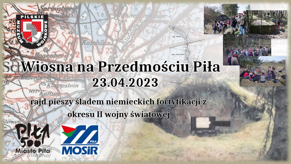 Startujemy autobusem o 10:00 z placu Zwycięstwa i jedziemy na ,,Przedmoście”. Idziemy pieszo od Leszkowa przez poligon, dalej jeziorami do ostatniego schronu bojowego przy szosie na Złotów. Wracamy drugim brzegiem jeziora ,,Płotki” i dzięki uprzejmości MOSIR Piła robimy na koniec rajdu ognisko na terenie Ośrodka Turystyczno-Wypoczynkowego ,,PŁOTKI”. Autobus odwozi nas na plac Zwycięstwa.WAŻNE INFORMACJE ORGANIZACYJNE:Opłata za uczestnictwo 10 zł od osoby (zawiera opłatę za przejazd oraz koszt ubezpieczenia), zbieramy przy wsiadaniu do autobusu, prosimy przygotować odliczoną kwotę.W suchy prowiant i mokre picie na trasę oraz kiełbaski na ognisko każdy uczestnik zaopatruje się we własnym zakresie.Z uwagi na ograniczoną pojemność autobusu obowiązują zapisy – zgłoszenie zawierające imię i nazwisko uczestnika należy wysłać na adres rajd@pmw.pila.pl do godziny 23:59 w dniu 21.04.2023.Przyjęte zgłoszenie zostanie potwierdzone e-mailem zwrotnym z przypisanym numerem na liście uczestników. Potwierdzenia wysyłane będą najdalej w kolejnym dniu po zgłoszeniu.Osoby niepełnoletnie poniżej 16 roku życia biorą udział będąc pod opieką osoby dorosłej – pełnoprawnego opiekuna.Do zobaczenia!!!
