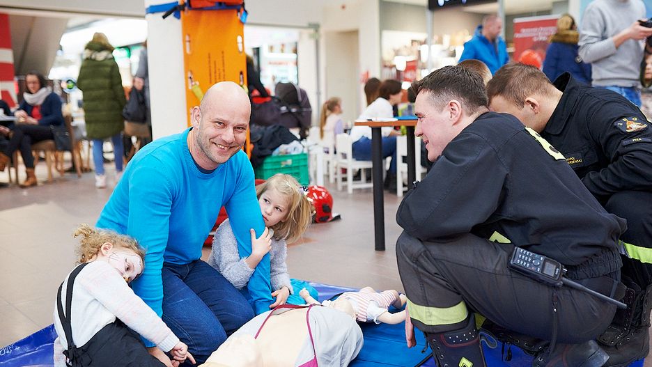 Strażacy tradycyjnie przed galerią ustawili ciężki sprzęt, między innymi łódź ratunkową. Jak zwykle takie wyposażenie budziło duże zainteresowanie, zwłaszcza najmłodszych. Wewnątrz galerii nie brakowało praktycznych stoisk z fantomami, na których pod okiem profesjonalistów ratowników-strażaków można było ćwiczyć resuscytację krążeniowo-oddechową. Chętnych nie brakowało. Uczyli się przede wszystkim dorośli. Próbowały jednak również starsze dzieci, jak i najmłodsi. Duże zainteresowanie budził również kącik policyjny. Tam każdy mógł się przekonać się jak negatywne są następstwa spożycie alkoholu dla kierowców. Pomogła w tym konkurencja z alkogoglami, przy wykorzystaniu których trzeba było ułożyć klocki. Jak się okazało, zarówno dla dzieci, jak i dorosłych, było to trudne zadanie.