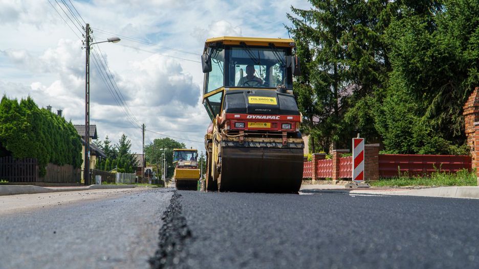 W gminach powiatu pilskiego trwają prace przy remontach dróg powiatowych i budowie chodników. Jeden z remontów dróg odbywa się w Równopolu.