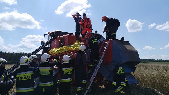 Do poważnego wypadku doszło w trakcie żniw na polu w okolicy miejscowości Pniewo. Rolnik wpadł do kombajnu. Na miejsce wezwano śmigłowiec LPR-u.