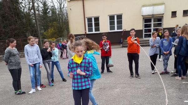 Od poniedziałku 3 kwietnia 2017 r. uczniowie walczyli w konkursie „Skoków przez linę”. Każda klasa wyznaczyła 10 uczestników, biorących udział w tych zawodach. Konkurs rozpoczęły klasy szóste. Zwycięską klasą zostali zawodnicy klasy VI a, gdzie Karol Bartz pobił dotychczasowy rekord szkolny, skacząc 572 razy. Gratulujemy! Niewiele gorszy wynik miał uczeń klasy V a Tymoteusz Radtka, wykonując 506 skoków. W poziomie klas IV zwyciężyła Jagoda Chwiłka, uczennica klasy IV d, skacząc 354 razy.