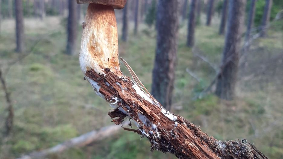 Kilka dni temu na tego nietypowego grzyba natknął się podleśniczy Nadleśnictwa Lipka, Andrzej Lalik. Grzybiarze zwykle spodziewają się znaleźć borowiki czy maślaki w trawie, na mchu lub ściółce leśnej, ale ten okaz postanowił złamać wszelkie zasady! Zamiast tradycyjnie wyrastać z ziemi, grzyb wybrał sobie za “dom”… patyk.
