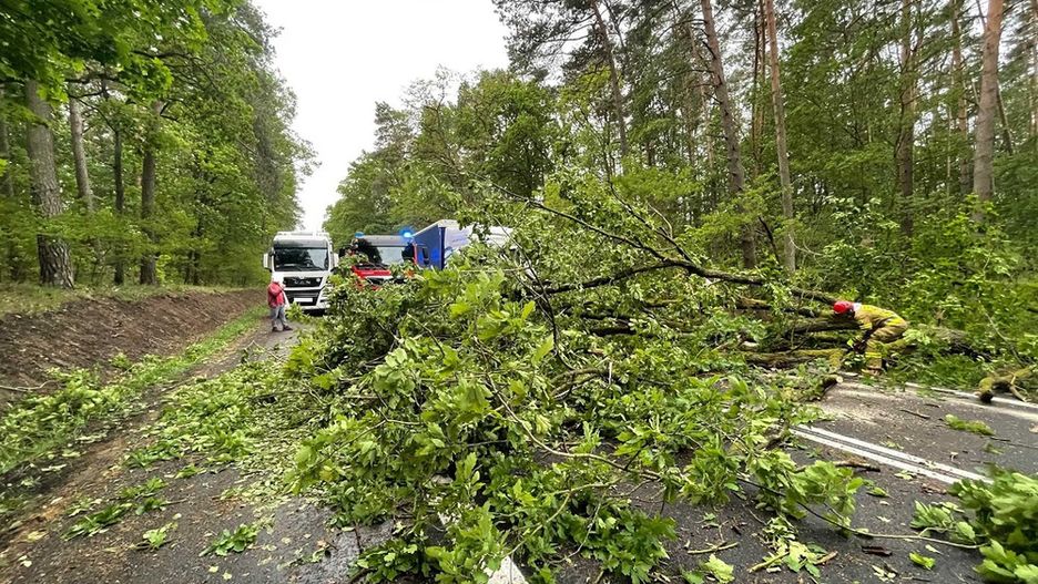 Strażacy musieli też zabezpieczać uszkodzone przez wichurę dachy czy usuwać drzewa, które uszkodziły pojazdy osobowe.
