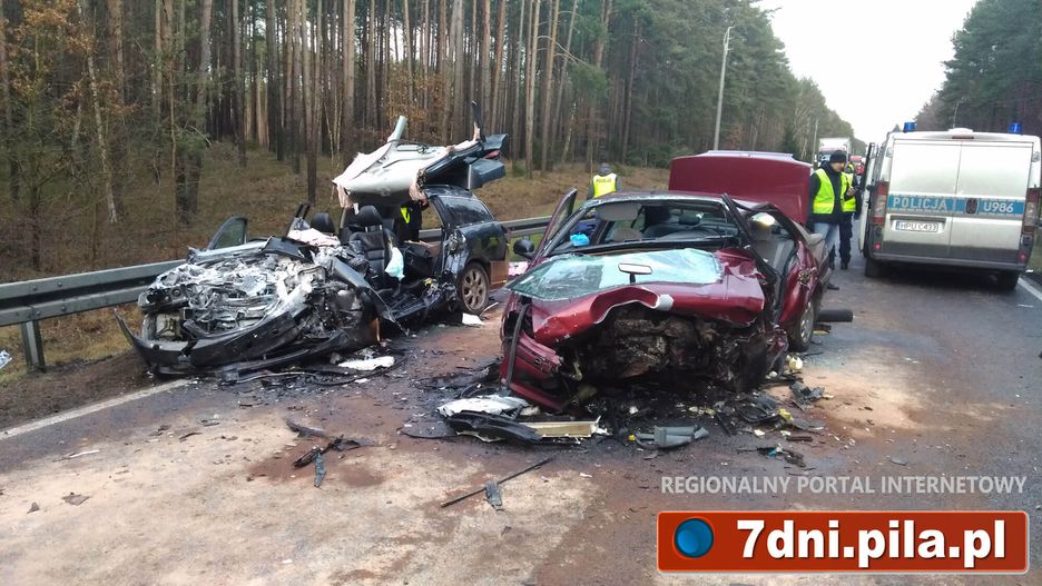 Dwie osoby: kierowca i pasażerka z peugeota zmarły na miejscu. Kierowca i pasażerka hondy i dwoje dzieci trafili do szpitali w Pile i Złotowie.