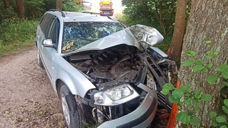 Z pierwszych ustaleń wynika, że volkswagen passat kombi na łuku drogi zjechał na pobocze i uderzył w drzewo.