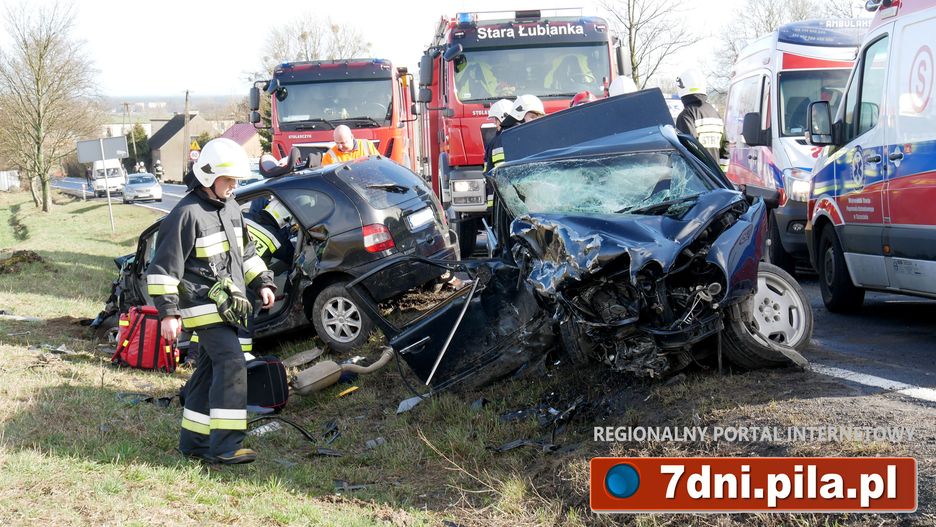 W wyniku wypadku śmierć na miejscu poniósł kierujący renaultem. Jego pasażerka oraz kierujący mercedesem z obrażeniami ciała trafili do szpitala w Pile.