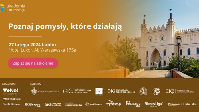 Już 27 lutego w Lublinie rozpocznie się 12. edycja Akademii e-marketingu adresowana do przedsiębiorców z sektora MSP. W tym roku eksperci odwiedzą 14 lokalizacji w największych miastach w Polsce. Akademia e-marketingu jest cyklem spotkań edukacyjnych poświęconych budowaniu strategii promocji firmy w Internecie. Uczestnicy, podczas spotkań z ekspertami, będą mogli zdobyć lub poszerzyć swoją wiedzę z zakresu marketingu online np. tworzenia strony WWW, działań SEO czy wykorzystania różnych narzędzi promocyjnych.