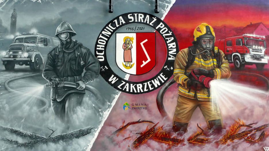 –Mural miał przedstawić to, jak zmienia się Ochotnicza Straż Pożarna na przestrzeni lat, w wyposażeniu osobistym i w sprzęcie. Po drugie oddaje hołd strażakom, którzy byli w służbie 75 lat, 40 lat temu i tak dalej po dzień dzisiejszy. Po trzecie ukazuje Strażaków OSP Zakrzewo z ich wozami, którzy stoją na straży bezpieczeństwa naszej wsi od początku istnienia, o czym świadczy wieża kościelna Kościoła Parafialnego i zarys domów mieszkańców – piszą strażacy z OSP w Zakrzewie na swoim internetowym profilu.