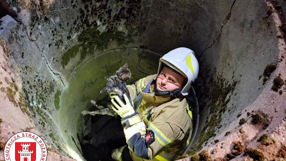 Strażacy z OSP Wysoka ratowali kotka, który wpadł do studni