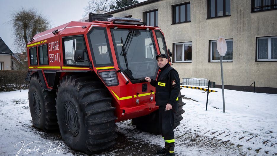 -Jest wyposażony w klimatyzację, ma pasy bezpieczeństwa. Kieruje się nim za pomocą drążków – mówi ogn. Seweryn Kozłowski z JRG nr 1 w Pile.