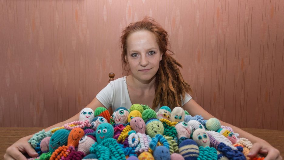 Dziergają wolontariusze z całej Polski. Organizujemy warsztaty, bo zależy nam na tym, aby ośmiorniczki były bezpieczne. To jest nasz priorytet. Ośmiorniczki muszą spełniać wymogi i wytyczne. Muszą być wykonane z odpowiednich materiałów, które posiadają certyfikaty. Ośmiorniczki od wolontariuszy przechodzą do rąk koordynatorów, którzy również są szkoleni w kierunku szydełkowania. Oni kontrolują ośmiorniczki. Sprawdzają, czy mieszczą się w naszych normach. Jeśli nie, instruują wolontariuszy i starają się pomóc im poprawić błędy. Dopiero po przejściu naszej kontroli ośmiorniczki lądują w szpitalu. Zanoszą je oczywiście koordynatorzy, każdy szpital ma przypisaną w tym celu jedną osobę. W szpitalu są również tworzone procedury wewnętrzne, ośmiorniczki są sterylizowane lub prane w min 60 stopniach i dopiero potem wydawane są rodzicom. Głównie mamom, które jeszcze je przytulają, żeby przeszły ich zapachem i żeby skolonizowały na sobie te dobre bakterie odpornościowe. Ostatecznie wkładamy do inkubatorów cząstkę mamy. Dodatkowo macki ośmiorniczek imitują pępowinę co wpływa również na to, że dzieci czują się bezpieczniej i są spokojniejsze. Nie bawią się już kabelkami aparatury, tylko mackami.