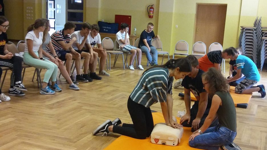 Uczniowie ćwiczyli zasady resuscytacji krążeniowo – oddechowej na fantomach, a także ułożenie poszkodowanego w pozycji bezpiecznej. Młodzież dowiedziała się też o odpowiedzialności prawnej nałożonej na każdego obywatela, poznała ogólne zasady postępowania na miejscu wypadku. Ratownicy zwracali szczególną uwagę na bezpieczne zachowanie podczas wakacji.
