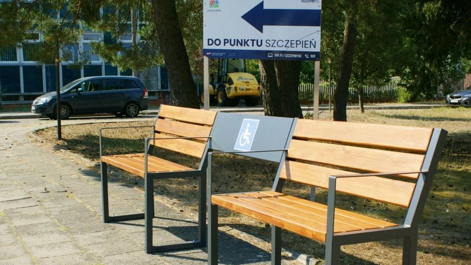 Jedna z nich została zlokalizowana nieopodal wejścia głównego do Szpitala, druga znajduje się w drodze na przystanek MZK. Ławki posiadają oparcia i podłokietniki ułatwiające wstawanie. W bezpośrednim sąsiedztwie siedziska zapewniono miejsce do odłożenia sprzętu rehabilitacyjnego. Ławki zostały wyposażone w miejsce, które pozwoli na odpoczynek osobom poruszającym się na wózku inwalidzkim.