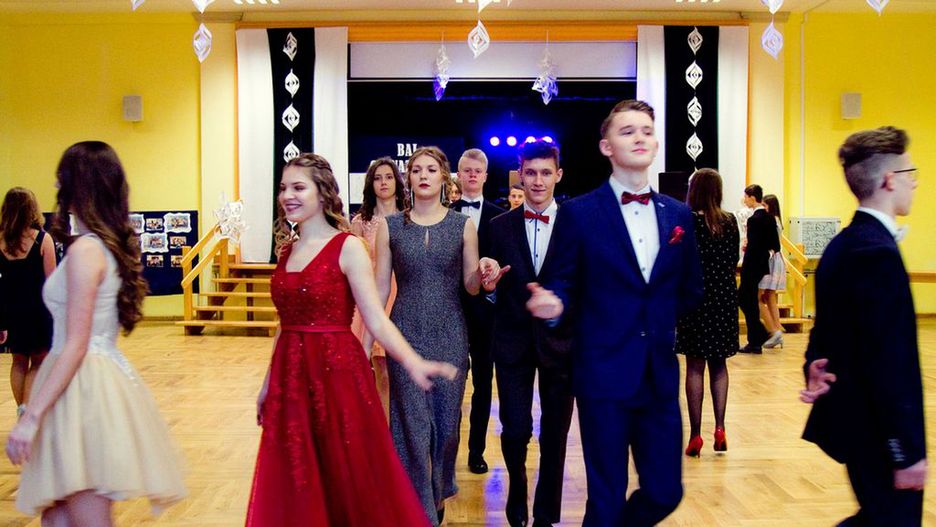Przyszli absolwenci naszej szkoły rozpoczęli uroczystość tradycyjnym polonezem, do którego przygotowywała ich pani Paulina Chwaliszewska. Piękny taniec wprowadził wszystkich w niezwykle uroczysty nastrój. Dla wielu trzecioklasistów był to pierwszy w życiu prawdziwy bal, dlatego przygotowywali się do niego z niezwykłą starannością. Dziewczęta zadbały o zachwycające wieczorowe kreacje i piękne fryzury, chłopcy zaprezentowali się w eleganckich garniturach. Zgadnie z pięknym zwyczajem tancerze po zakończonym polonezie wręczyli swoim partnerkom róże. Młodzież przygotowała również drugi taniec tzw. belgijkę. Po popisach tanecznych wszyscy uczniowie otrzymali z rąk pani dyrektor i pani Edyty Lipkowskiej przypinkę z pamiątkowym napisem GIMSTÓWKA 2019.