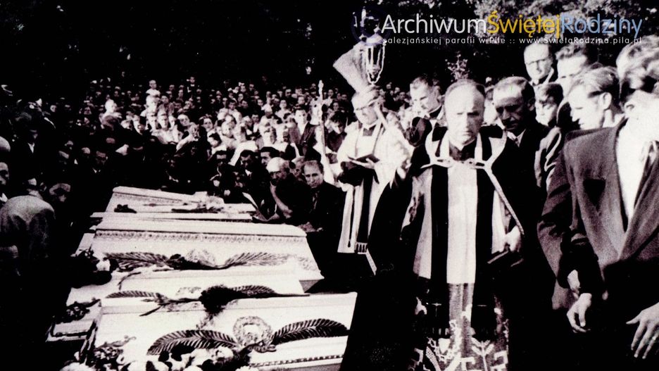 Pogrzeb ofiar na długo zapisał się w pamięci pilan. W kościele Świętej Rodziny w Pile stanęło aż jedenaście dziecięcych, białych trumien – takiego widoku nie zapomniano do dziś. Ceremonia przerodziła się w manifestację patriotyczną i wyraz sprzeciwu wobec lekceważenia bezpieczeństwa mieszkańców. Pogrzeb odbył się na cmentarzu przy ul. Wojska Polskiego w Pile.