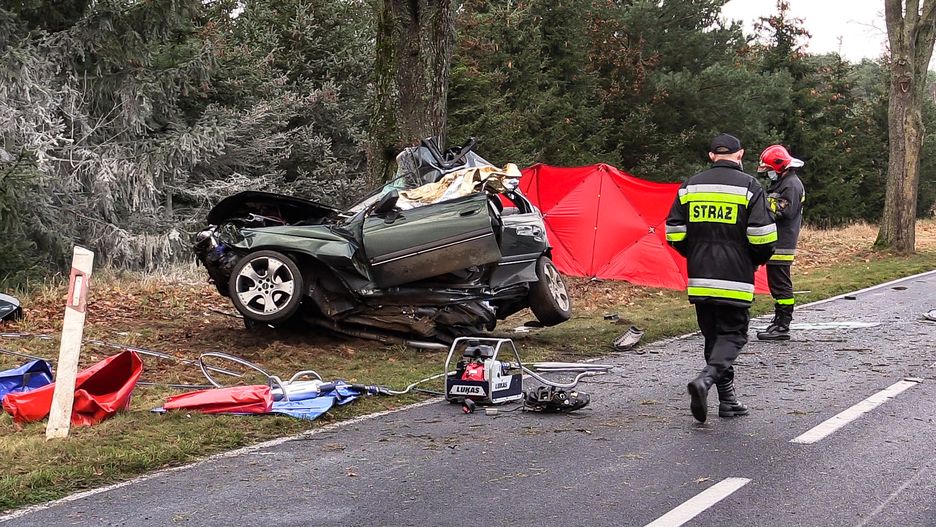 Tragiczny wypadek na drodze Piła – Trzcianka. Samochód owinął się wokół drzewa