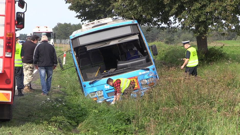 Autobus jechał w stronę Wałcza. Na łuku drogi pękła opona, pojazd zjechał na przeciwległy pas ruchu i wjechał do rowu. Na szczęście nikomu nic poważnego się nie stało.