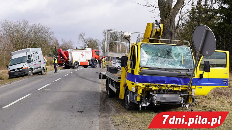 Ze wstępnych informacji wynika, że 25-letni mieszkaniec gminy Szydłowo jadąc podnośnikiem koszowym marki Nissan nie dostosował prędkości do warunków panujących na drodze i doprowadził do zderzenia z busem marki Renault, prowadzonym przez 71-letniego mieszkańca powiatu złotowskiego, który poruszał się przed podnośnikiem.