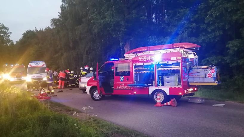 Wczoraj o godz. 21.00 służby ratunkowe dostały informację, że samochód osobowy uderzył w drzewo. Na miejsce zostały zadysponowane 2 zastępy OSP Kaczory, 2 jednostki z Jednostki Ratowniczo – Gaśniczej nr 2 z Piły, a także Zespół Ratownictwa Medycznego i policja.