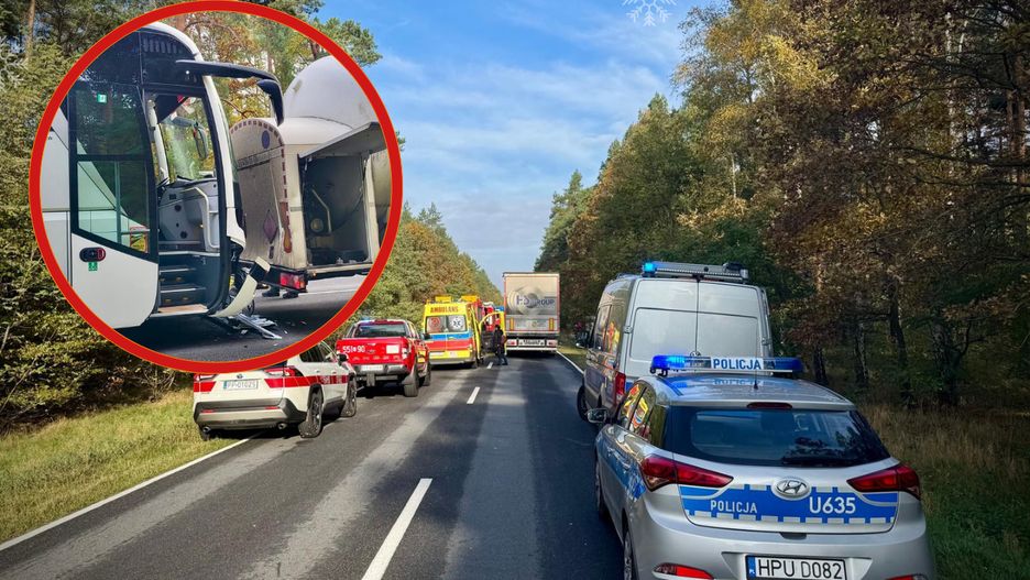 Wypadek na DK10! Autokar z 41 uczniami zderzył się z ciężarówką – na szczęście nikt nie ucierpiał