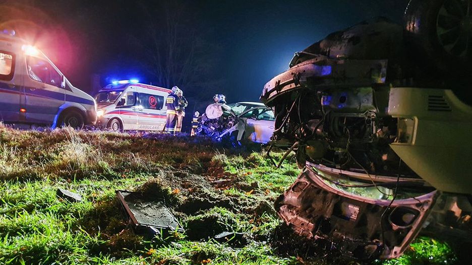 Doszło tam do zderzenia samochodu osobowego z ciężarowym. Ten drugi dachował i znajdował się poza jezdnią.