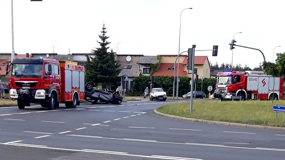 Siła uderzenia spowodowała, że jeden z pojazdów dachował. Aktualnie służby ratownicze są na miejscu wypadku. Panują utrudniania w ruchu.