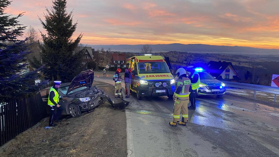 Wystarczyła chwila nieuwagi, by doszło do zderzenia dwóch osobówek w Sierockiem w pow. tatrzańskim.