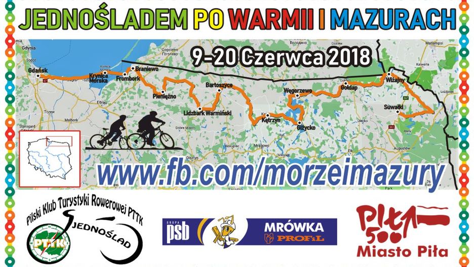 Już w najbliższą sobotę 9 czerwca, siedmiu pilskich rowerzystów: Ania, Dorota, Brygida, Dawid, Michał, Romek i Julian z Pilskiego Klubu Turystyki Rowerowej PTTK JEDNOŚLAD, ruszają na 12 – dniową wyprawę rowerową: Jednośladem po Warmii i Mazurach – 9.06 – 20.06.2018 r.