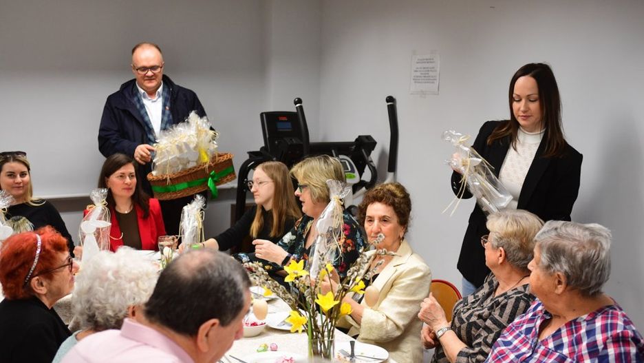 Starosta Pilski Eligiusz Komarowski uczestniczył w śniadaniu wielkanocnym w Klubie Pogodnego Seniora Powiatu Pilskiego. Złożył seniorom życzenia i wręczył upominki.