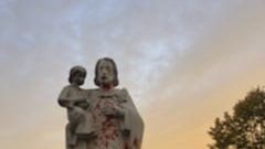 Pod osłoną nocy figura została pomalowana czerwoną substancją, podobnie było z przykościelnym krzyżem, a także wejściem do kościoła i tablicą ogłoszeń parafialnych.