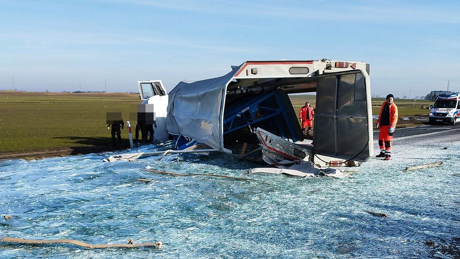 Do kolizji doszło na 247. km dk 10, na odcinku Bydgoszcz – Nakło nad Notecią. Zderzyły się ciągnik rolniczy z samochodem osobowym, wskutek czego ciężarówka przewróciła się, a przewożone nią szkoło rozsypało się na jezdnię i pobocze.