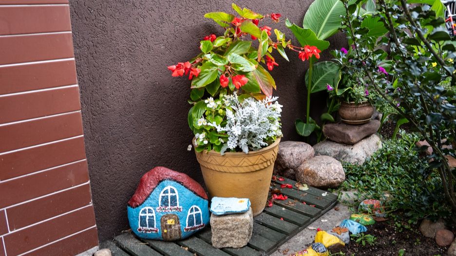 Ten niezwykły zakątek to zaczarowany ogród, stworzony z sercem i ogromnym wyczuciem piękna. Wśród bujnej zieleni kryją się kolorowe kamyczki, starannie rozmieszczone figurki, a także kwitnące kwiaty, które dodają miejscu uroku o każdej porze roku. To żywa galeria wyobraźni, gdzie każdy detal ma znaczenie, a całość tworzy harmonijną, wręcz magiczną przestrzeń.