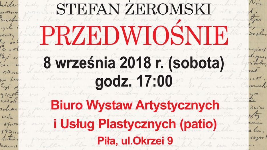 Czytanie Przedwiośnia odbędzie się podobnie jak rok wcześniej w Biurze Wystaw Artystycznych i Usług Plastycznych w Pile przy Okrzei. Ale nieco w innym miejscu.
